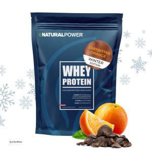 Eiweißpulver mit Süßungsmittel zur Herstellung eines Kaltgetränks mit Schokoladen-Orangengeschmack